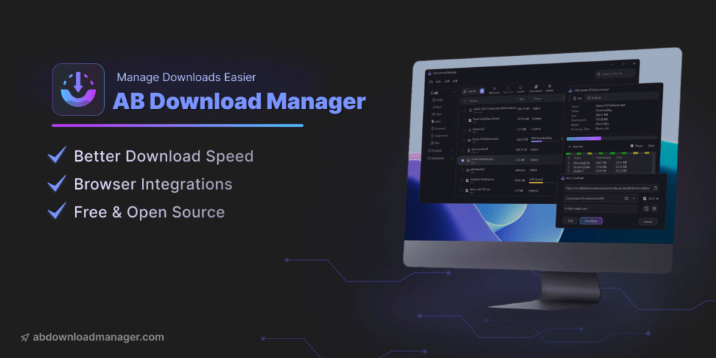 This is a completely open source free downloader, its features and speed can completely replace IDM.AB DOWNLOAD MANAER